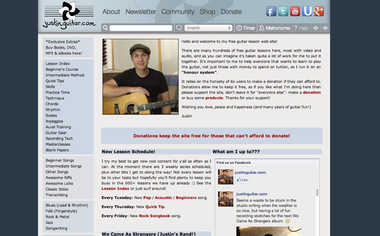 Guitar is one of the few instruments out there that’s actually pretty easy to learn if you’re a little older, making it one of the most accessible instruments. Still, learning how to play still takes some direction, at least for most people, so a guy named Justin decided he was going to help out. His website provides hundreds of free guitar lessons that range in different styles, depending on how you want to play. His schedule for learning is pretty easy to follow, and the site is a great stepping stone for people wanting to pick the instrument up.