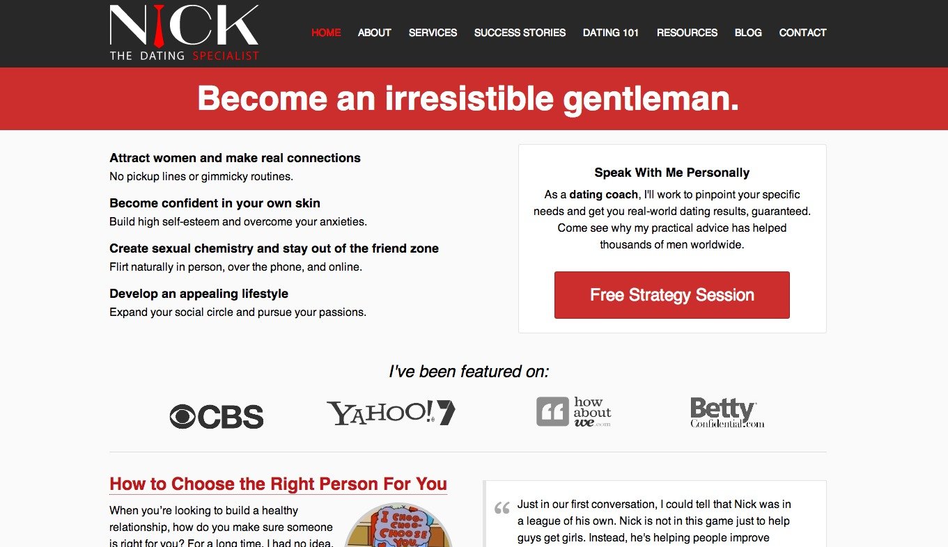 Or Nick the Dating Specialist is a website that wants to help guys be better dates. The site is full of advice on how to approach social situations and flirt successfully with different types of people. Nick even offers personal coaching at your request, so he can help your specific situation or hurdle to successful dating.