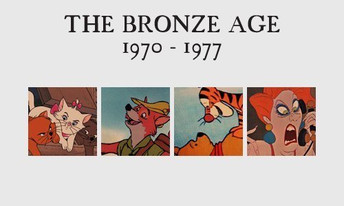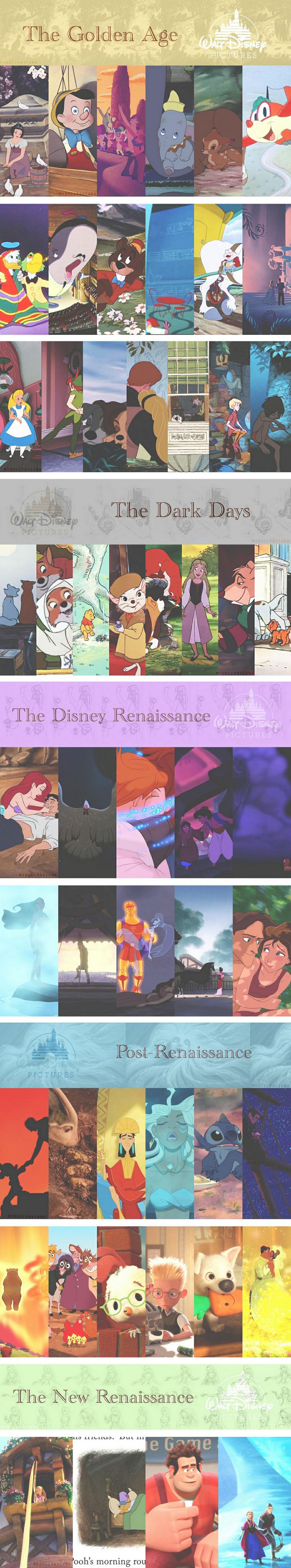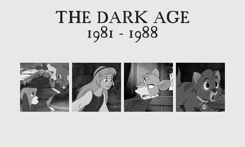 For those wondering about the "dark age" era, it's because of the dark tones of the movies. Also some of them are based off of novels that surprised me. Oliver and Company is based off Oliver Twist, and The Fox And The Hound the novel is honestly kinda depressing. Just read the plot summary on Wikipedia or something.