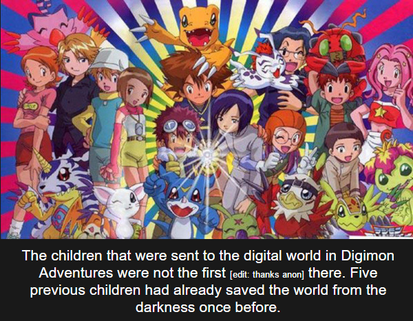 The children that were sent to the digital world in Digimon Adventures were not the first [edit: thanks anon] there. Five previous children had already saved the world from the darkness once before.