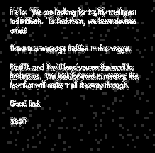 Each year in January, the Cicada 3301 begins. Years ago on 4chan, a mysteriou contest began with an image saying "they" are looking for the smartest people on the internet, and saying that there was a hidden message in that image. People started decoding it, going through more and more weird puzzles that eventually even stretched out to outside the internet and into the real world, all over the world like Japan, France and the USA.