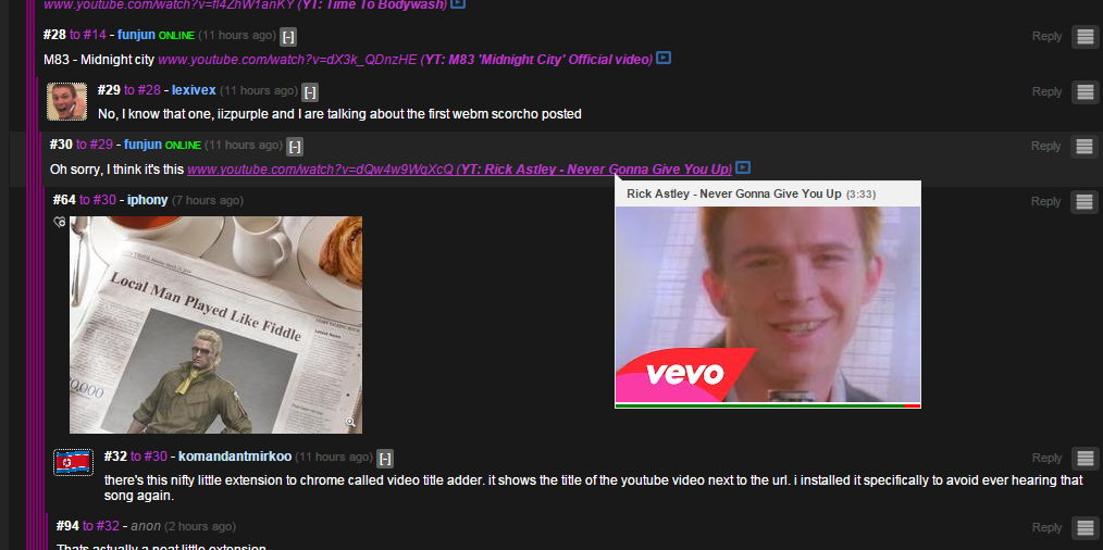 there's this nifty little extension to chrome called video title adder. it shows the title of the youtube video next to the url. i installed it specifically to avoid ever hearing that song again.