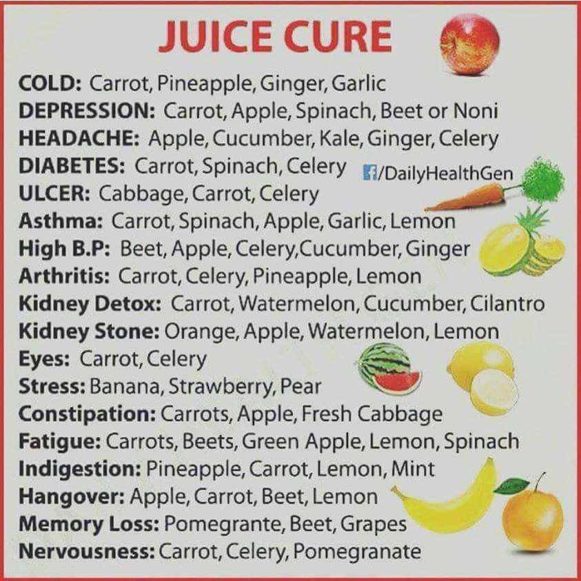 joking aside, in the Juice Cure section, does this mean you blend the foods stated together into a juice? or do you need to just pick one of them and turn them into juice