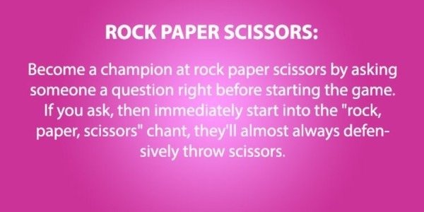 Wait, why wouldn't you do scissors? If you're telling people you're gonna use rock then their instinct should be to use paper. If you do it your way it'll just result in a tie.