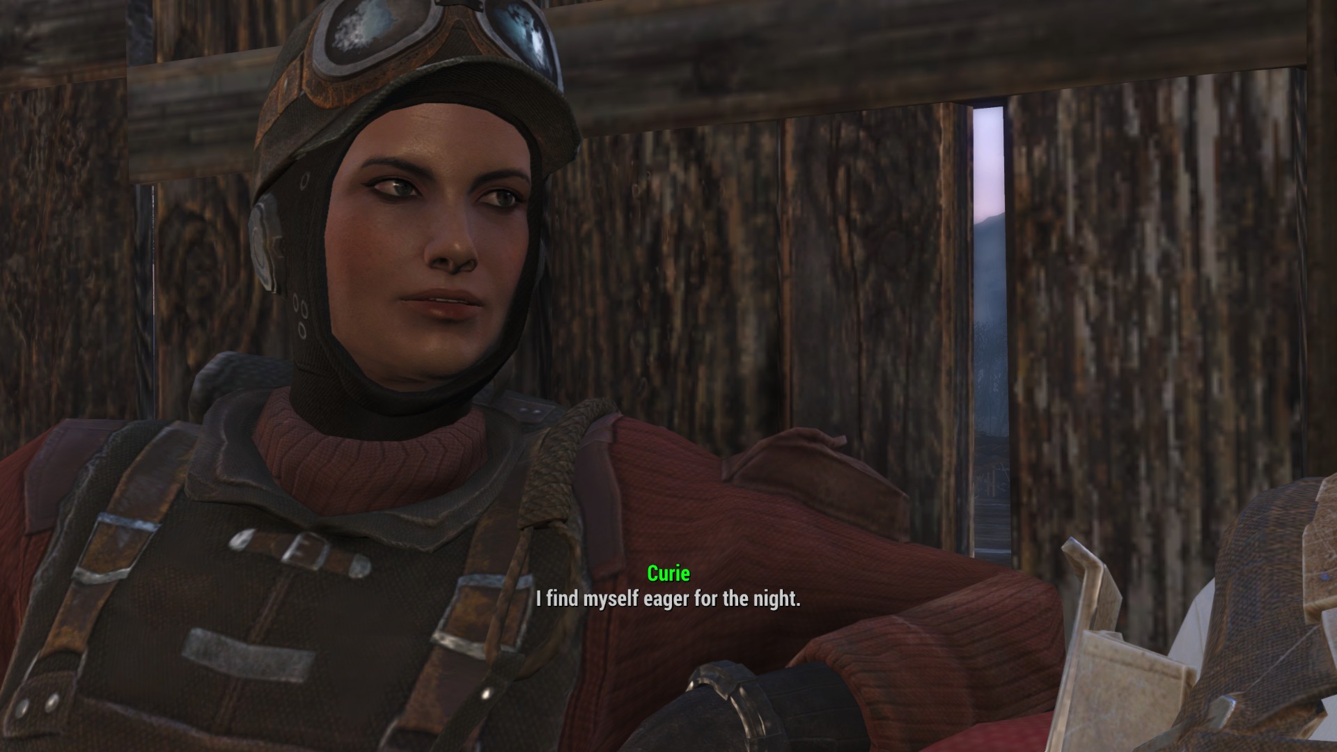 Curie, a female version of the Mr. Handy models, she can be found in Vault 81 during a quest in which one of the younger residents of the vault is bitten by an infected mole rat. The quest is able to be obtained when the Sole Survivor returns to Vault 81 after finding the cat that ran out of the vault.