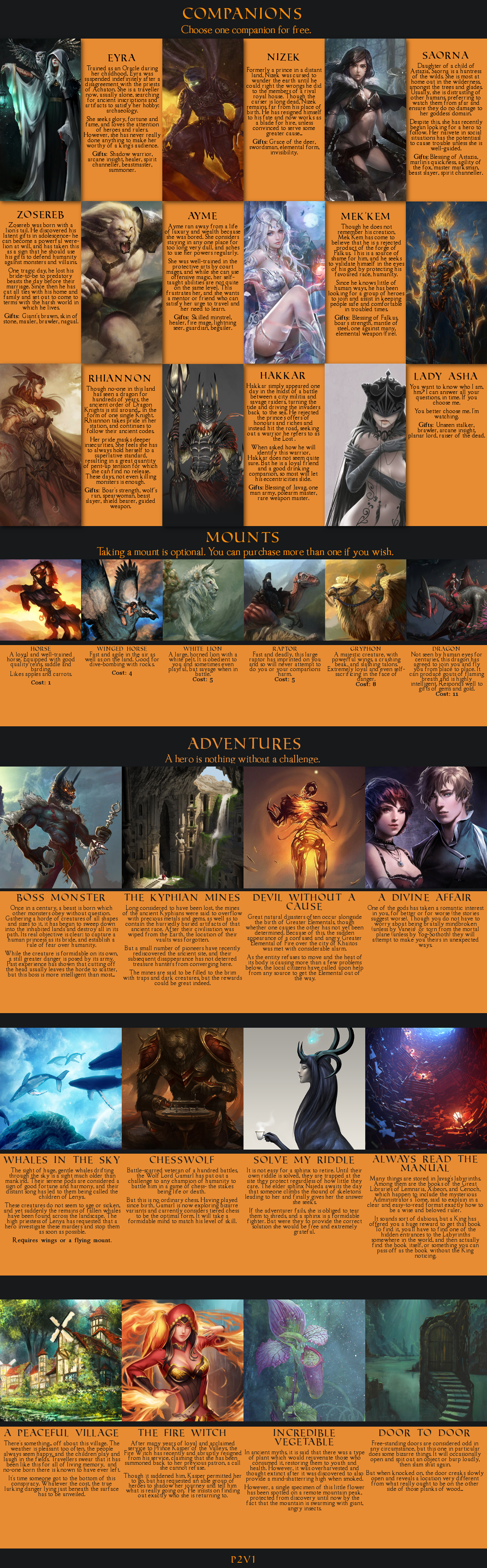 Companions - possibly more info about each one, with info about birth/linage, social status, economic status, sanity, emotional stability, equipment, etc.