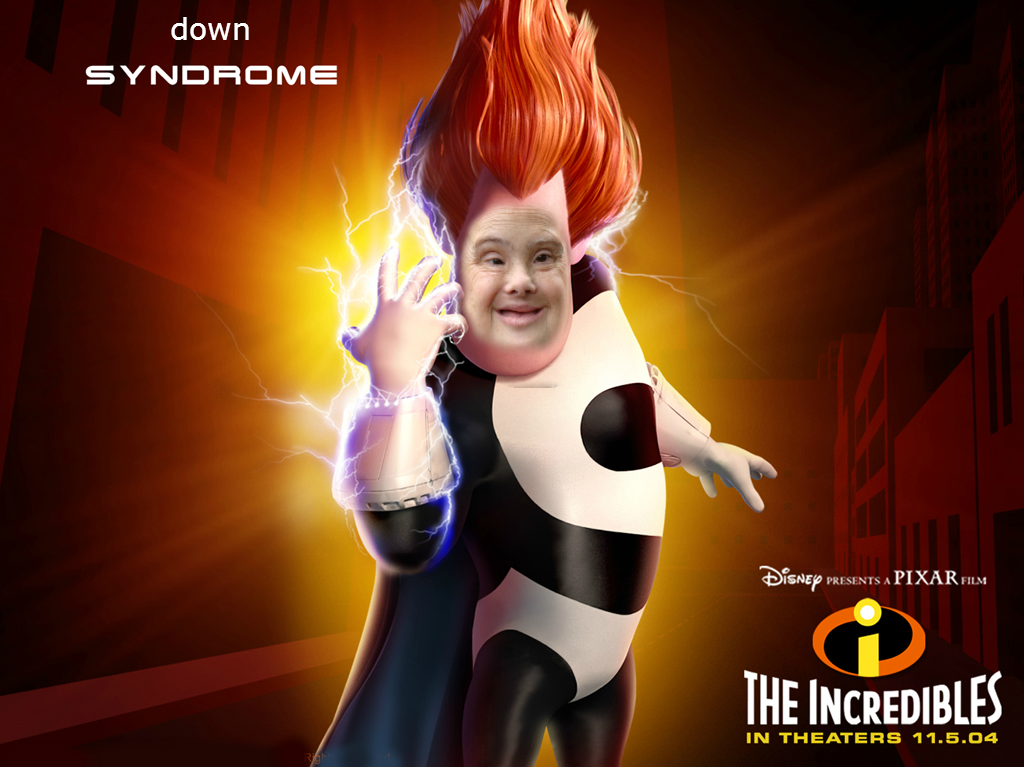 not gonna post pics but i googled it and got myself a hearty chuckle at the sea of downs kids and one picture of Syndrome from the incredibles ammong them