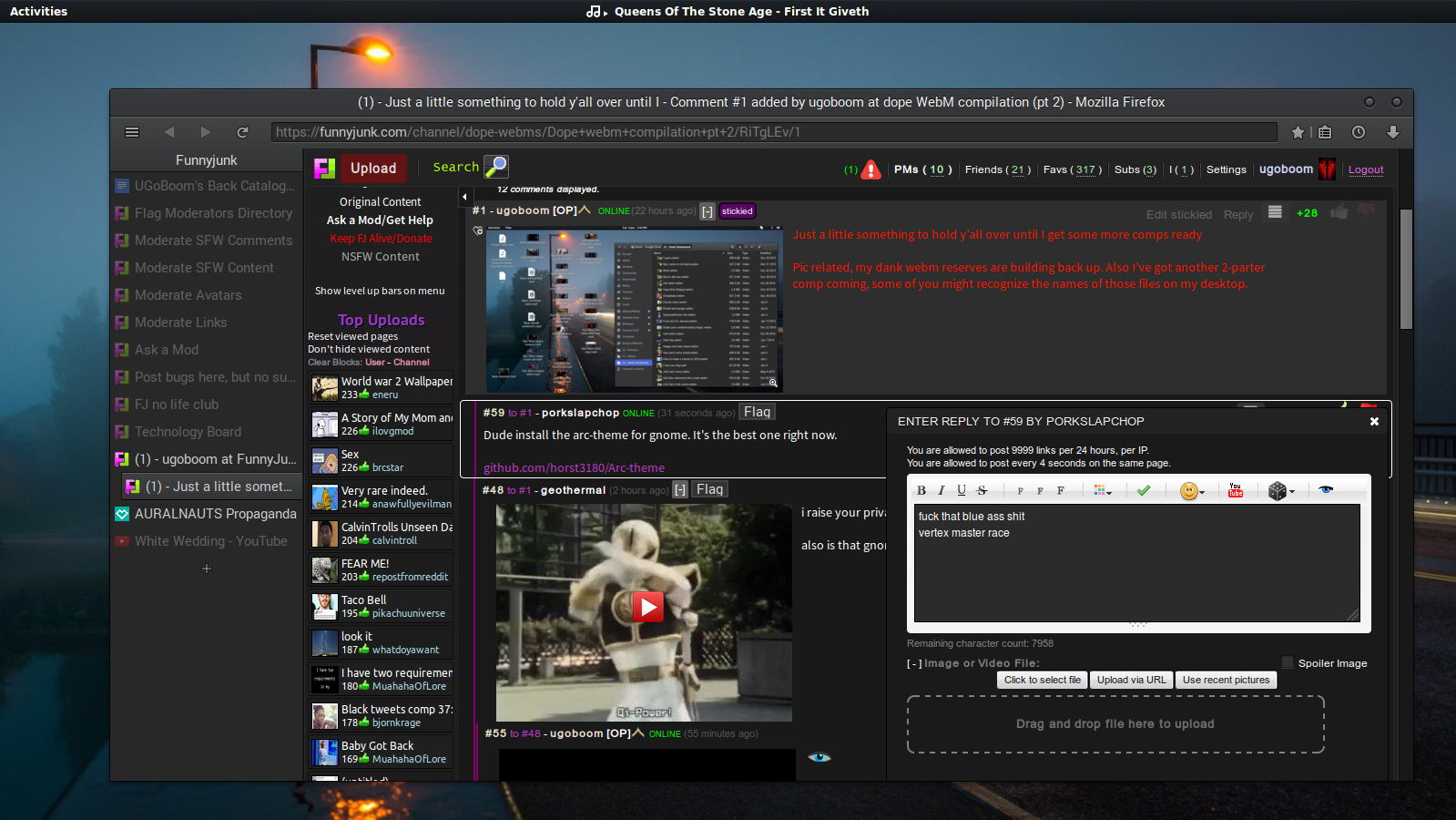 Pic related, my dank webm reserves are building back up. Also I've got another 2-parter comp coming, some of you might recognize the names of those files on my desktop.