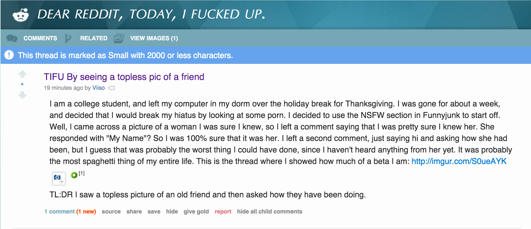 fl DEAR REDDIT, TODAY, I ****** UP.