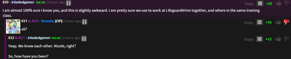 responded with "My blame"? So I was 100% sure that it was her. I left a second comment, just saying hi and asking how she had
