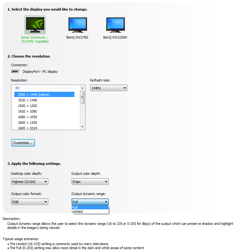 I suspect it could be the output range aswell, and that too depends on the color profile of the monitor, as some of them have their own setting for it independently from the computer. For example my main monitor which is a TN panel was set to full dynamic range by default, and it looks perfect. If set to limited it looks grey and washed out. But my other monitors being VA panels defaulted to limited, and still have perfect contrast, color, and blacks. If I set those to full they look way too dark and oversatured.