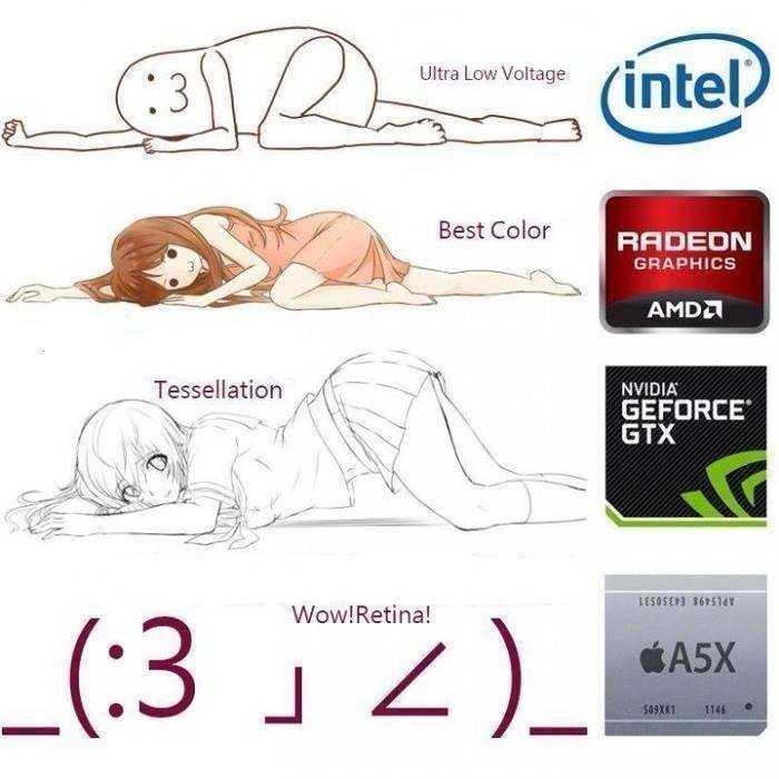 Well it's better that she catches fire than a AMD card sets your house on fire. Still waiting for a original GPU related joke, this one is over several card generations old...