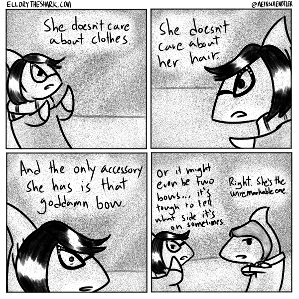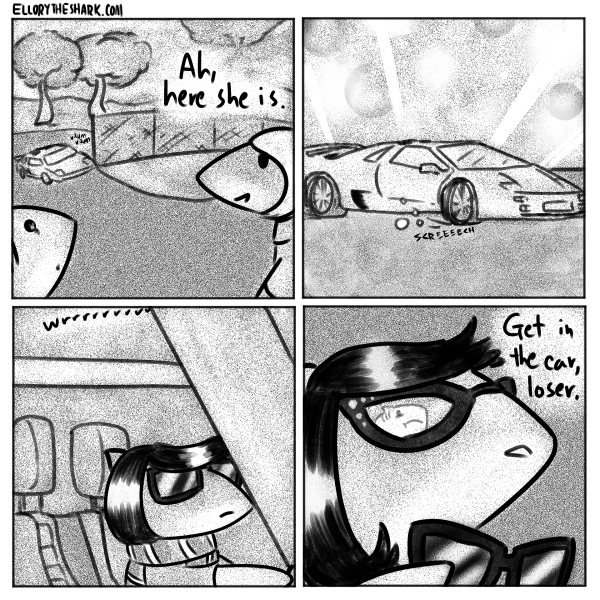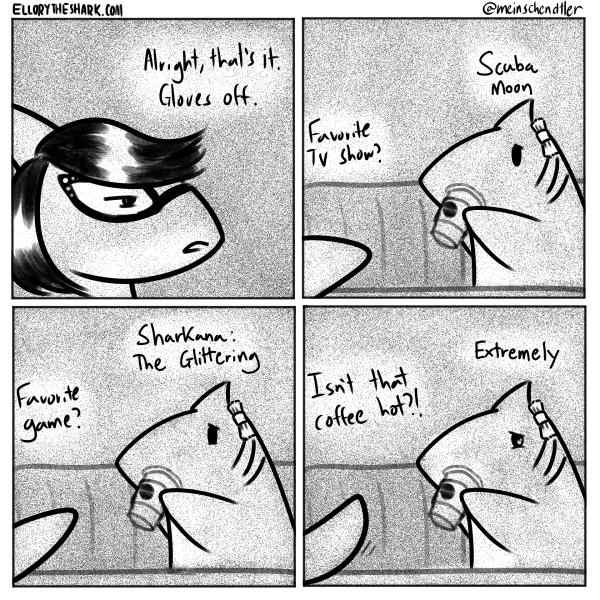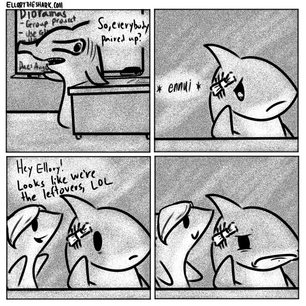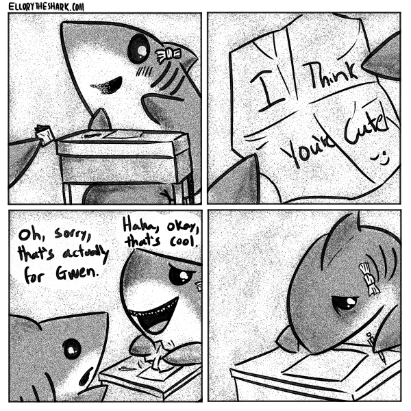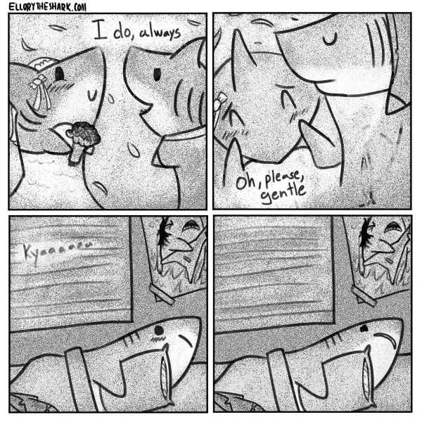 Oooooooh okay; I misinterpreted it in the comp. I thought the first two panels were other sharks getting married and she could hear them nearby which made her remember her loneliness or something like that.