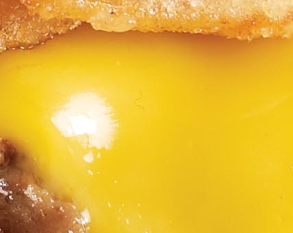click the picture to upsize it, then right click and select "view image", that'll show you the picture in its full glory, and you can indeed find the hair in the cheese.