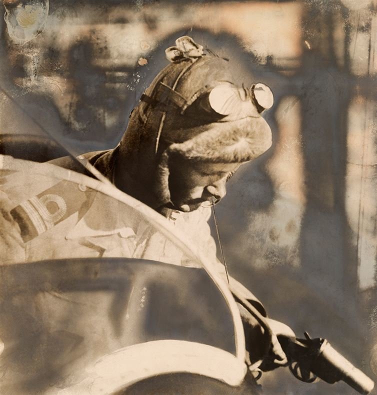 A British airman gives a signal to another friendly aircraft, 1918.