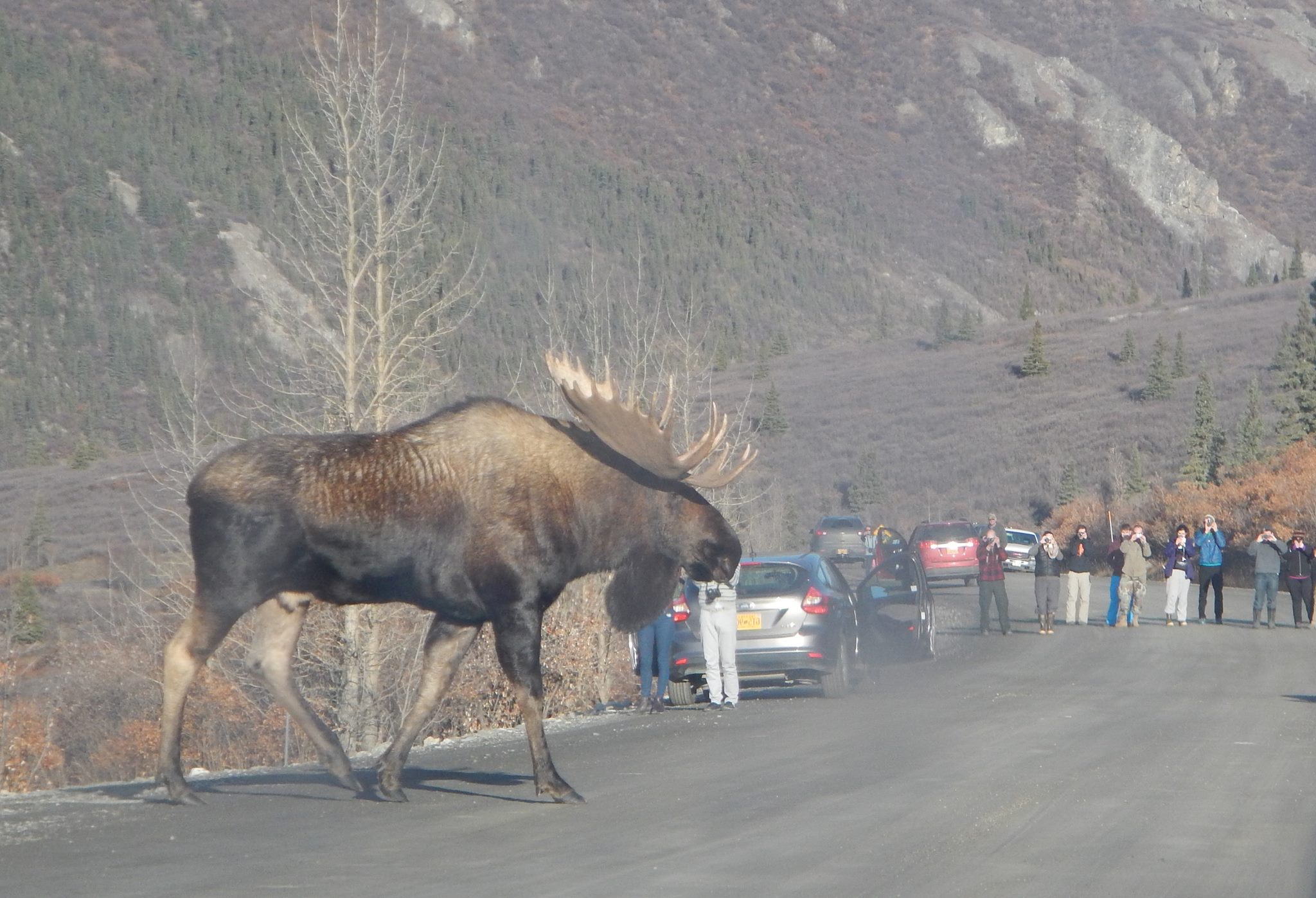 My uncle is an EMS in AK and he had to rescue this group of tourists that hit a moose. They were in a mini cooper driving for hours in a tiny car is a great idea and actually went under the thing. Unfortunately they hit it's belly and the whole roof of the car came off like a tin of sardines or spam or some other canned food and all of the moose guts were dumped into the car as the tourists crashed into a ditch. The tourists were covered in green partially digested lichen and stomach acid and smelled worse that death's armpits. They actually smelled so bad and were covered in such putrid goo that they made everyone from the crash wear trash bags until they got back to the station a 30 minute drive, but some of their calls can take up to 4 hours to reach . They hosed them off before they would even touch them. The worst injury was a broken arm or something and everyone had acid burns.