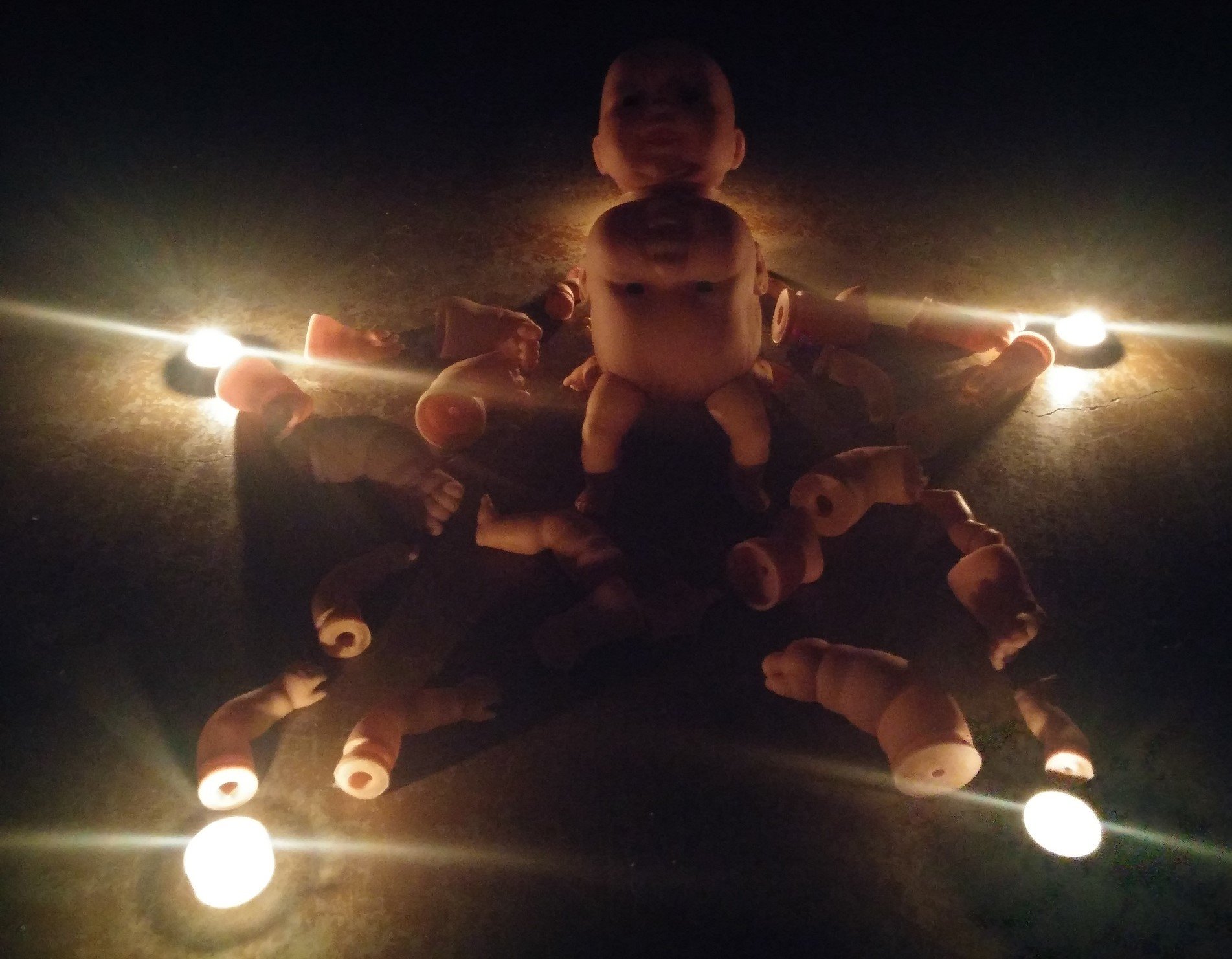 We all get stuck sometimes and wonder where to go from here. If you find yourself not sure what to put where, commune with the spirit that will inhabiting the vessel. All you need is 5 candles in a star shape, with your work-in-progress in the center. The limbs connecting the candles are optional, but can be helpful. Keep other new year's babies out of the room when you do this.