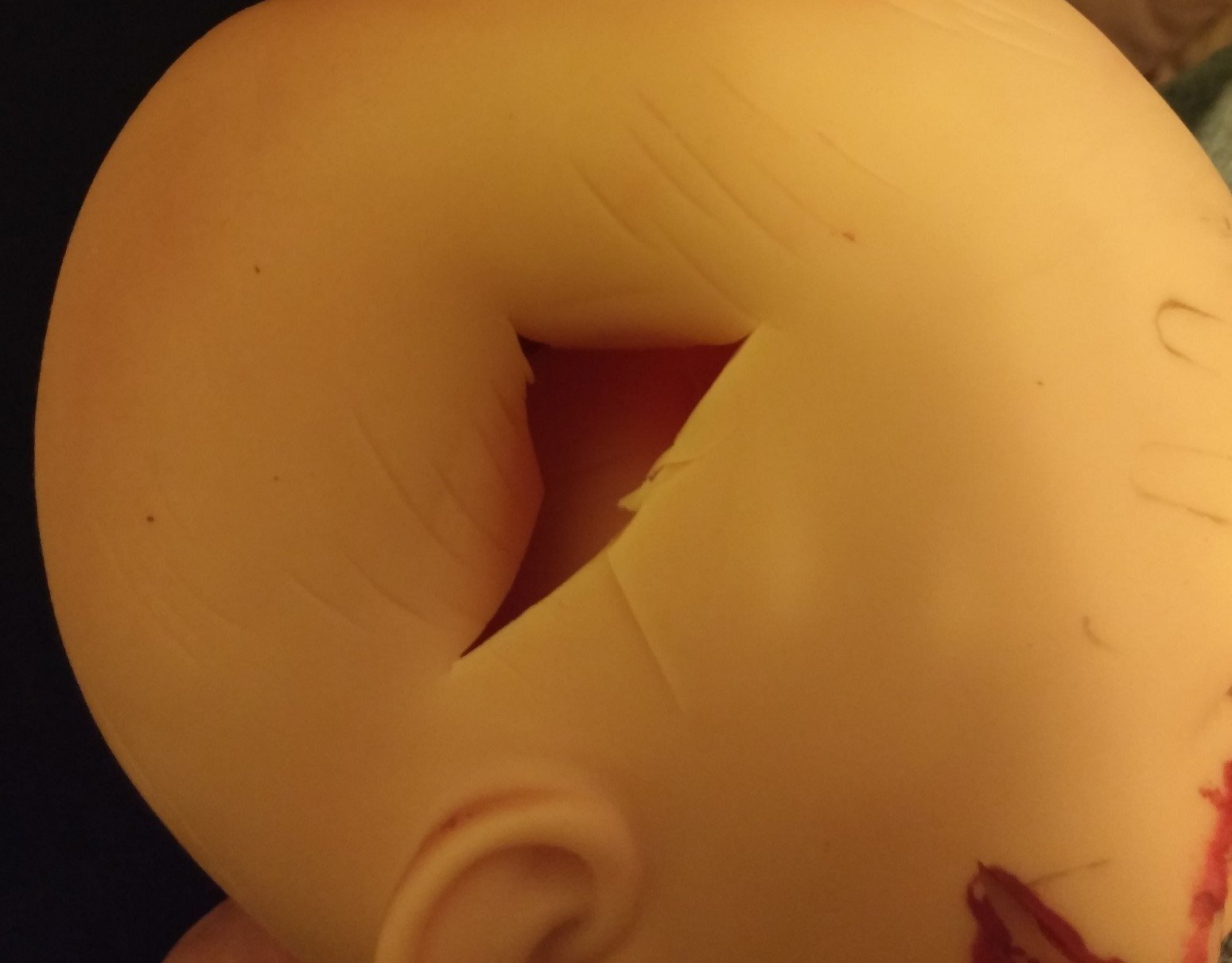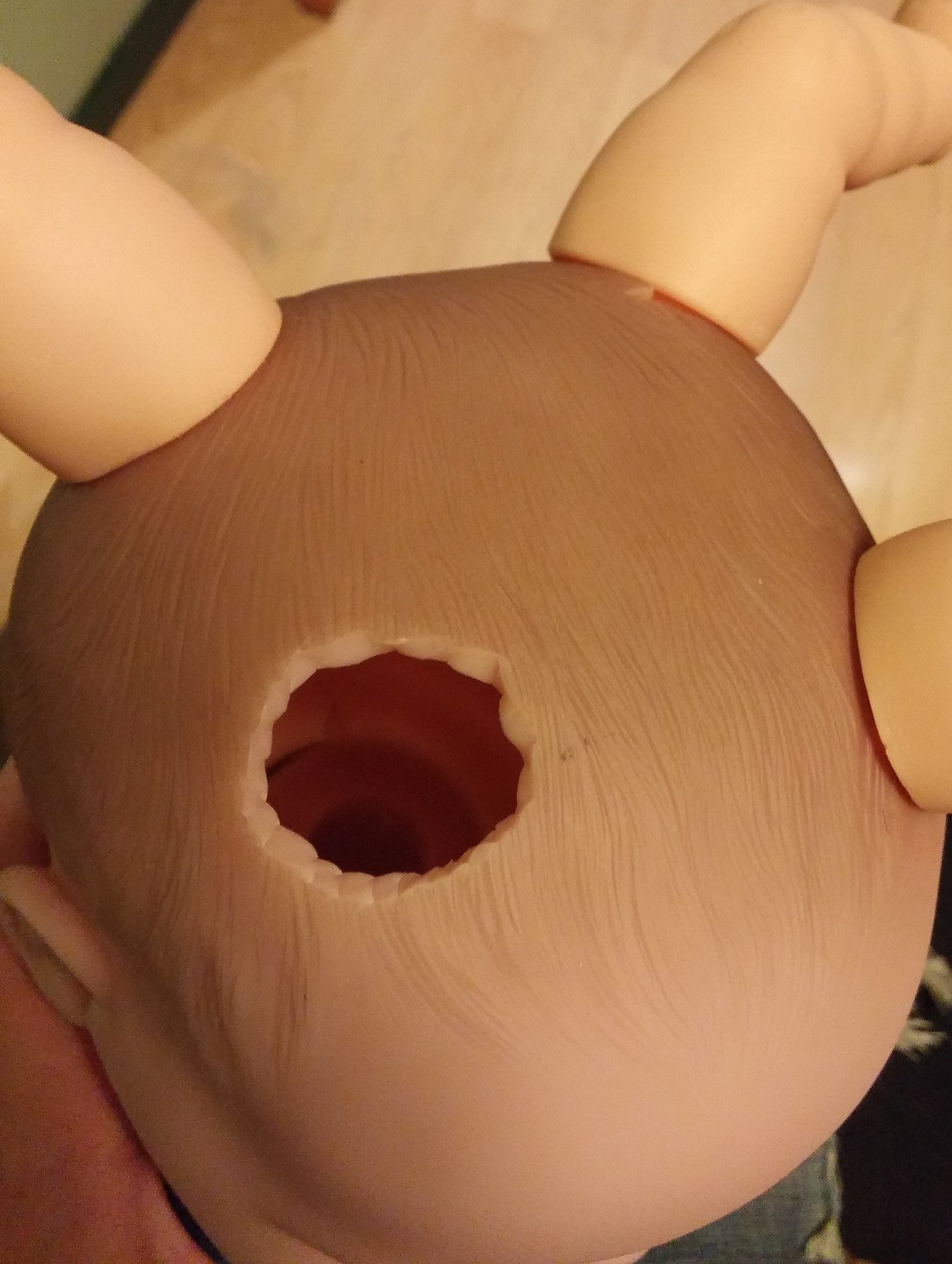 Using a knife cut a hole smaller than the mark, then wash the mark off. Then you just gotta force the limb in, if you're not used to the circle cut you might be tempted to cut larger holes, but to reiterate: It should be a tight fit. A tight fit makes for a strong vessel. If you accidently cut yourself make sure you spread the blood on the baby.