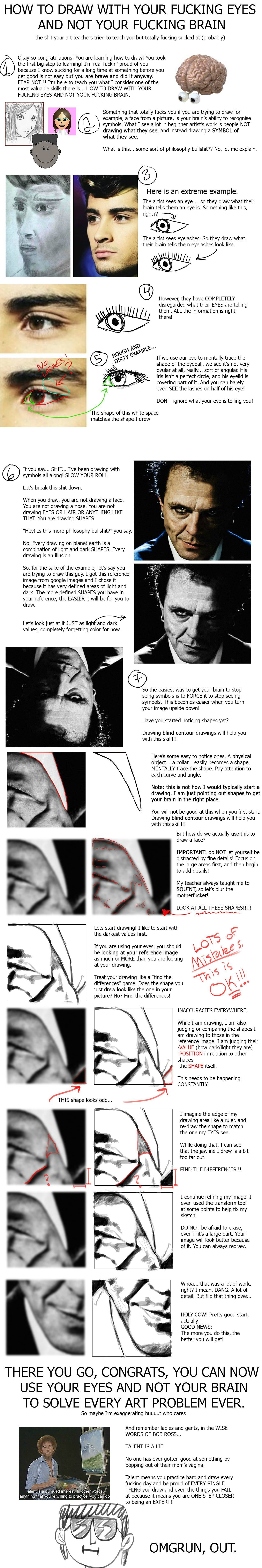 OH MAN! BLIND CONTOUR DRAWINGS! That **** was frustrating but really helped me become a better artist. If you do them every day for a year (in my case) you can really see a HUGE difference. The way my teacher put it the more you know about drawing when you start these the harder and more frustrating it will be. 100% true because it makes you relearn everything you thought you knew. Plus they're pretty fun to practice with a friend taking turns doing each others face. The stuff you get out of it is hilarious.