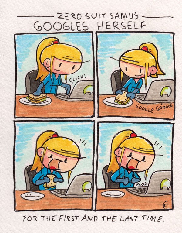 The Super Metroid 4-koma styled manga was a Japanese manga digest Shounen Oh Game Comic. It was only released in Japan and is not canon--it is more of a humorous parody for fans of the game than anything else. It consisted of quick four-panel jokes with little to no continuity, and placed Samus in various amusing situations based around Super Metroid.