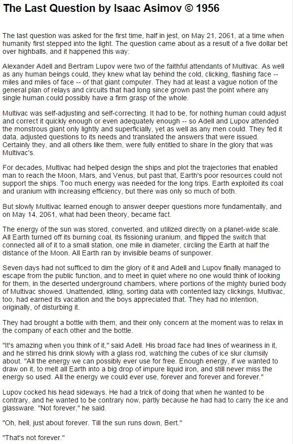 The Last Question by Isaac Asimov (st 1956