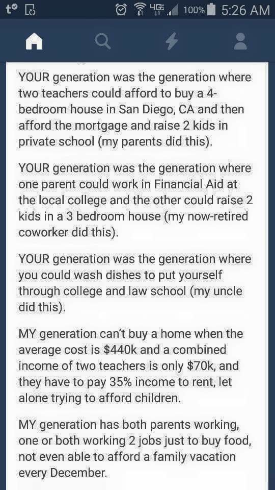 MY generation can' t buy a home when the