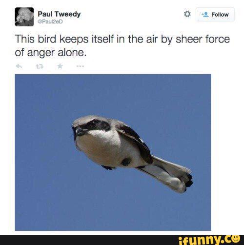A bird can reach terrifying speeds when it uses its sheer force of anger to fly.