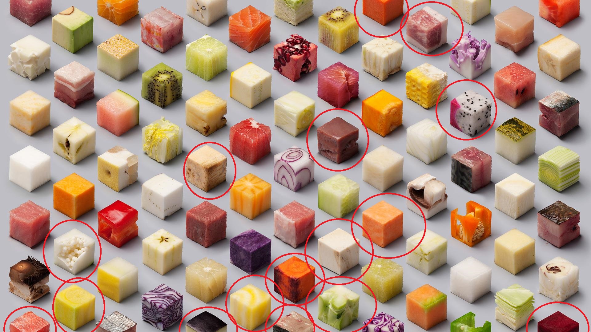 no wonder I didn't know many of the ones I circled. never seen pitaya, yellow carrot, yellow beet, saberfish meat or oyster mushroom. it's weird carrot never crossed my mind when seeing those though