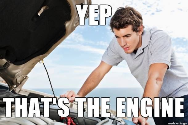 nah im not a douche dont worry And yea, i mean i can do an oil change but thats about it. But if it comes to other things i usually do the cheap porn version of repairs. Opening the hood and looking inside while waiting for my girl to come home.