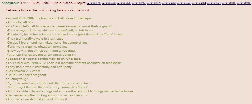 I remember one time my friend logged on wow drunk as balls and then got married with a random dwarf he found in SW. They found a priest and went behind the cathedral and to the gazebo and everything for the ceremony.
