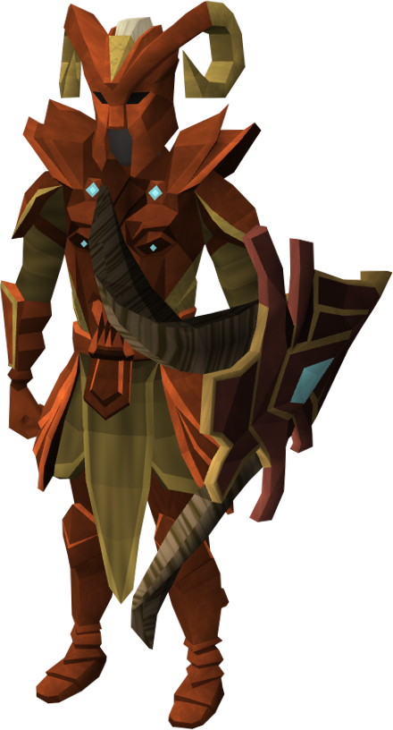His boots gloves cape ammy and helmet all increase melee stats. The only other item he could use is the chest plate. He used blitz because it dosn't lock you in animation so both attacks can hit at the same time.