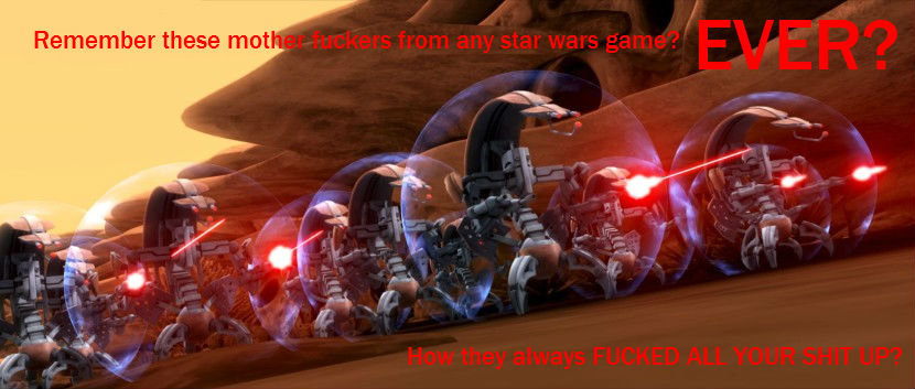 My Dad is so obsessed with that game to the point where he knows every minute detail about it. For example, he found out that you could slide a grenade under a droideka's shield and kill it every time.
