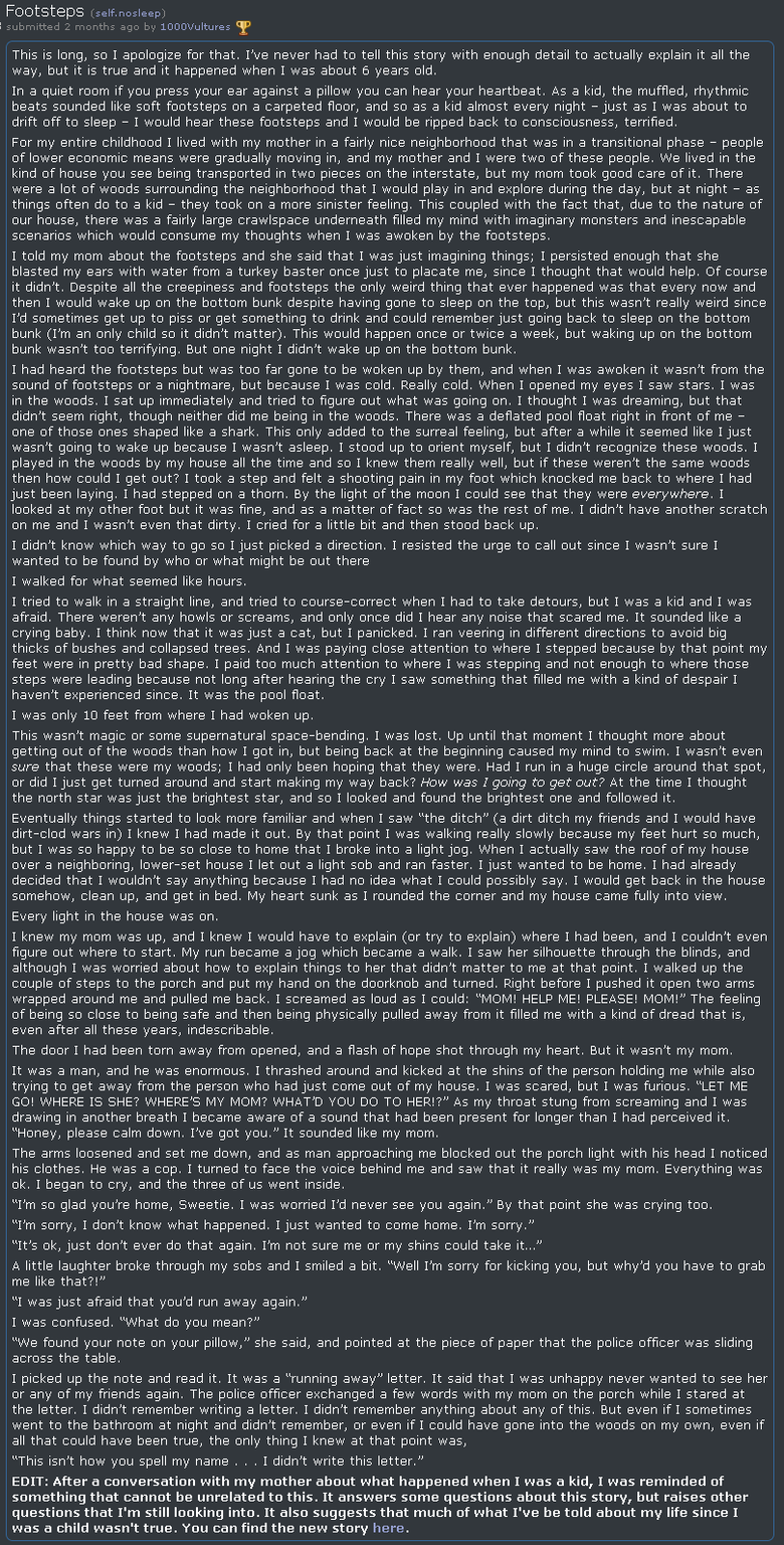 seend pf footsteps er a nightmare, but because I was epid. Really epid. when I opened my eyes I saw stars. I was