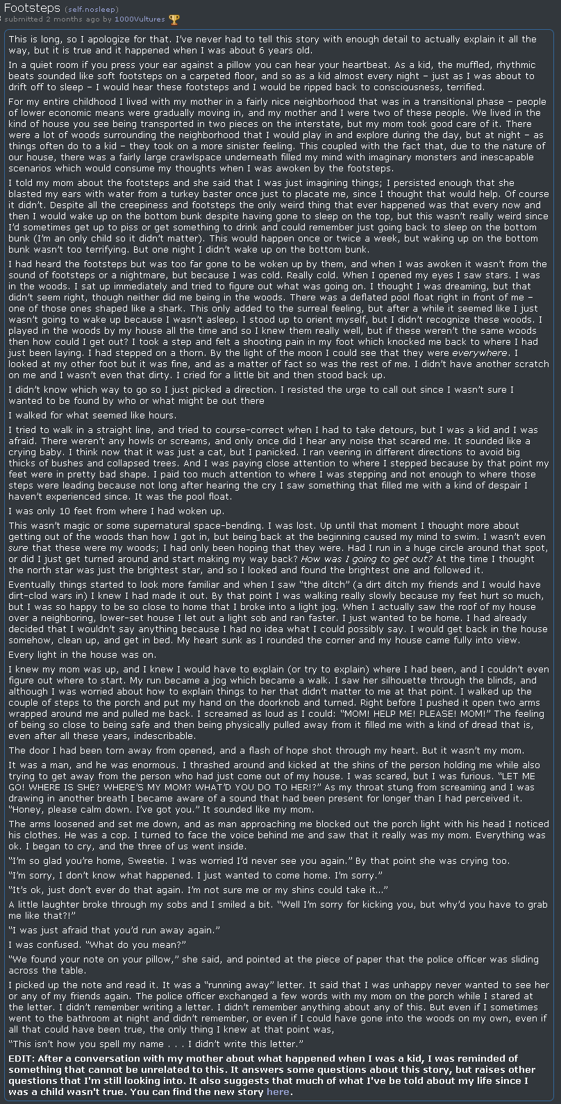 beats sounded like spvt footsteps en a carpeted , and SC) as a kid almost eyery night - just as I was abaut to