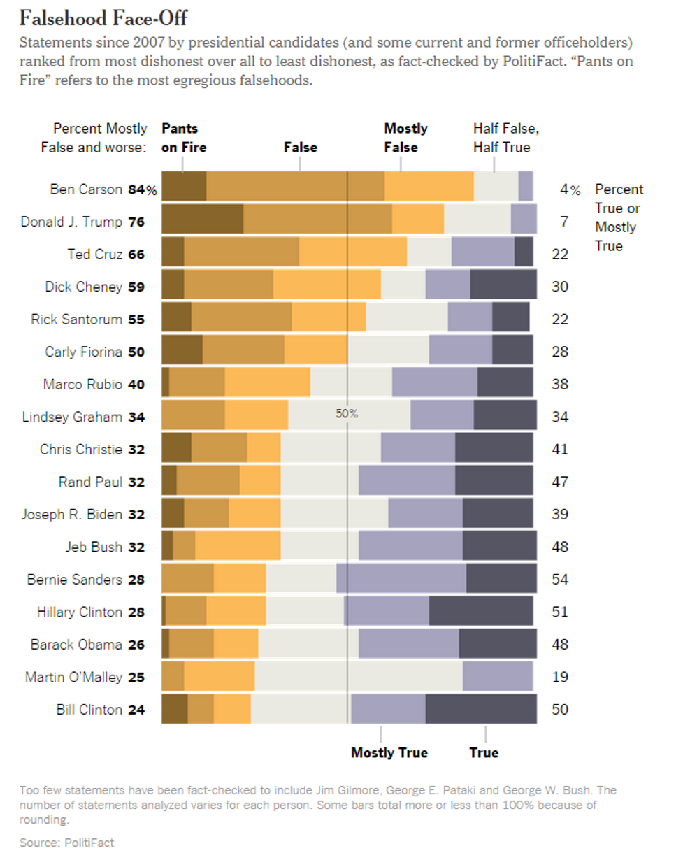 ranked from most dishonest over all to least dishonest, as by Politifact. 'Tents on