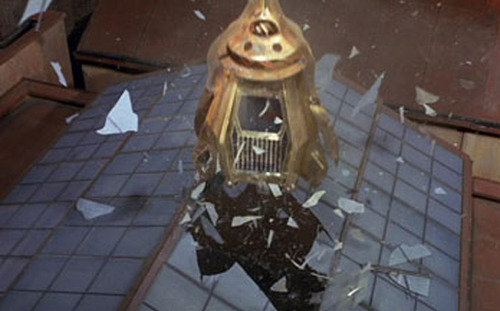 I'm willing to bet the brakes and the counterweight system failed at the same time. The weight shoots to the bottom of the shaft, causing the elevator to shoot up.
