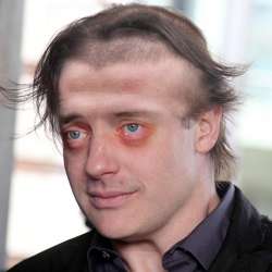 his hands above his head, but with great difficulty