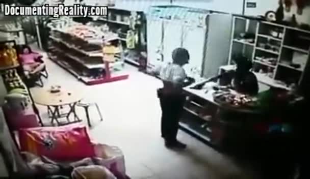 21 year old son got bitched at by his father for playing video games too much and not helping out in the family grocery store. the dad challenged his son to either shoot him or stop playing games. . then boom went the dynamite.