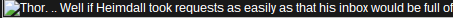 I feel like Heimdall needs to know where to look, though. Otherwise in Avengers (or any story ever) why bother searching for the bad guy? Just call up Heimdall and ask him where they're at.