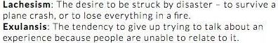 plane crash, or to lose everything in a fire.