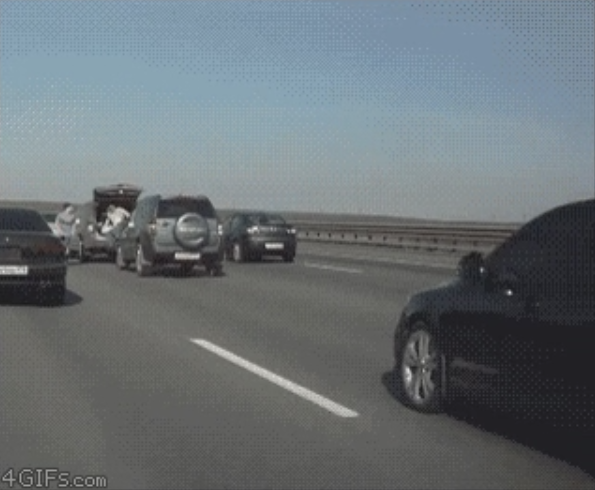 although, can't the ****** int he jeep clearly see that they are standing? i doubt they got into that position in less than a second. Had lots of time to see them and slow down