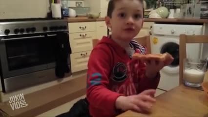 For some reason there's a step in front of their kitchen counters, which the first kid fails to take into account when stepping forward.
