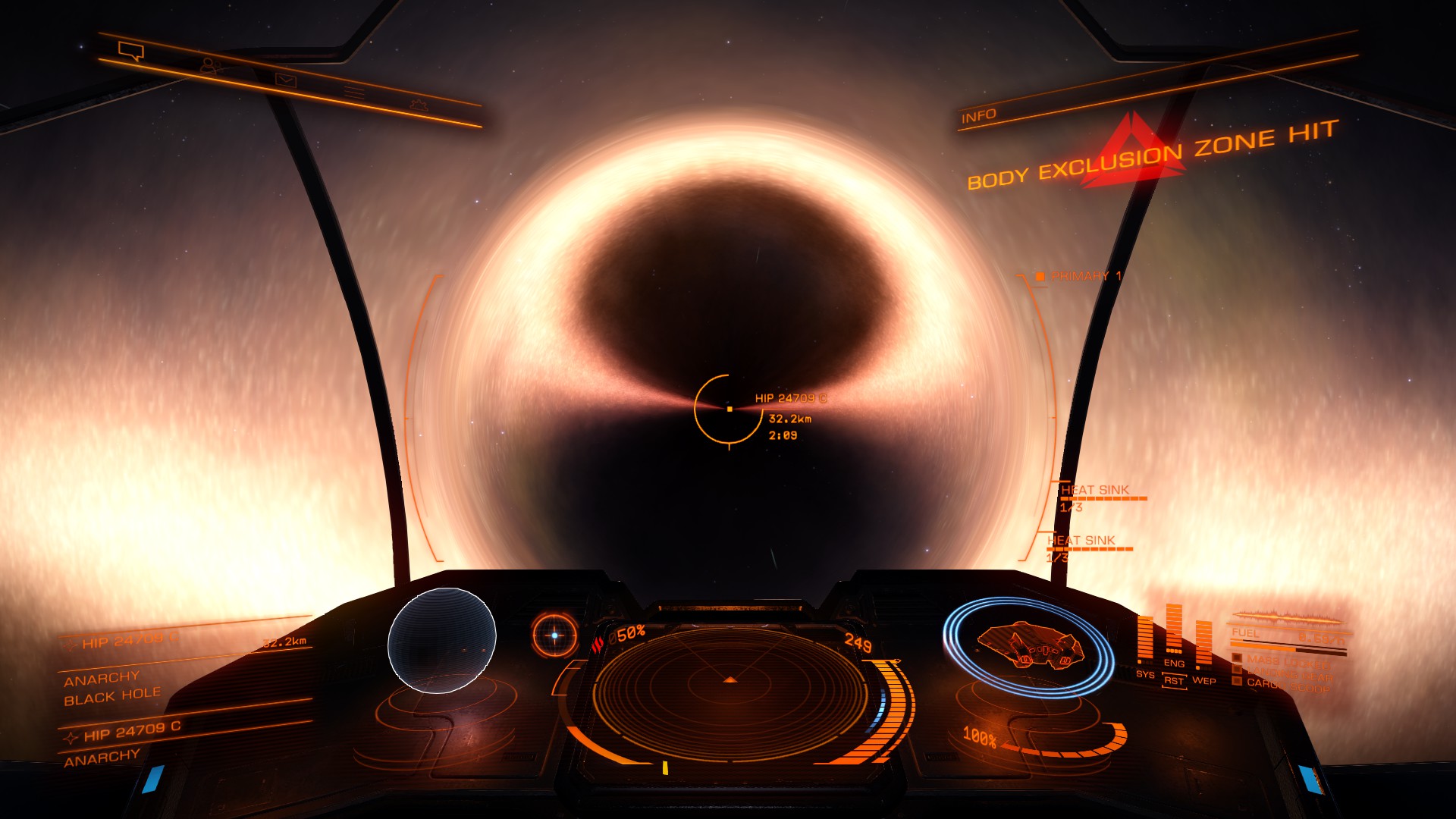 Yeah, I've made the video just for gags. Black holes in this game are actually not that deadly. If you look closely, before I select the object, there is a bright yellow circle around it. That's the radius at which I could have gone to and be ejected from supercruise next to it.