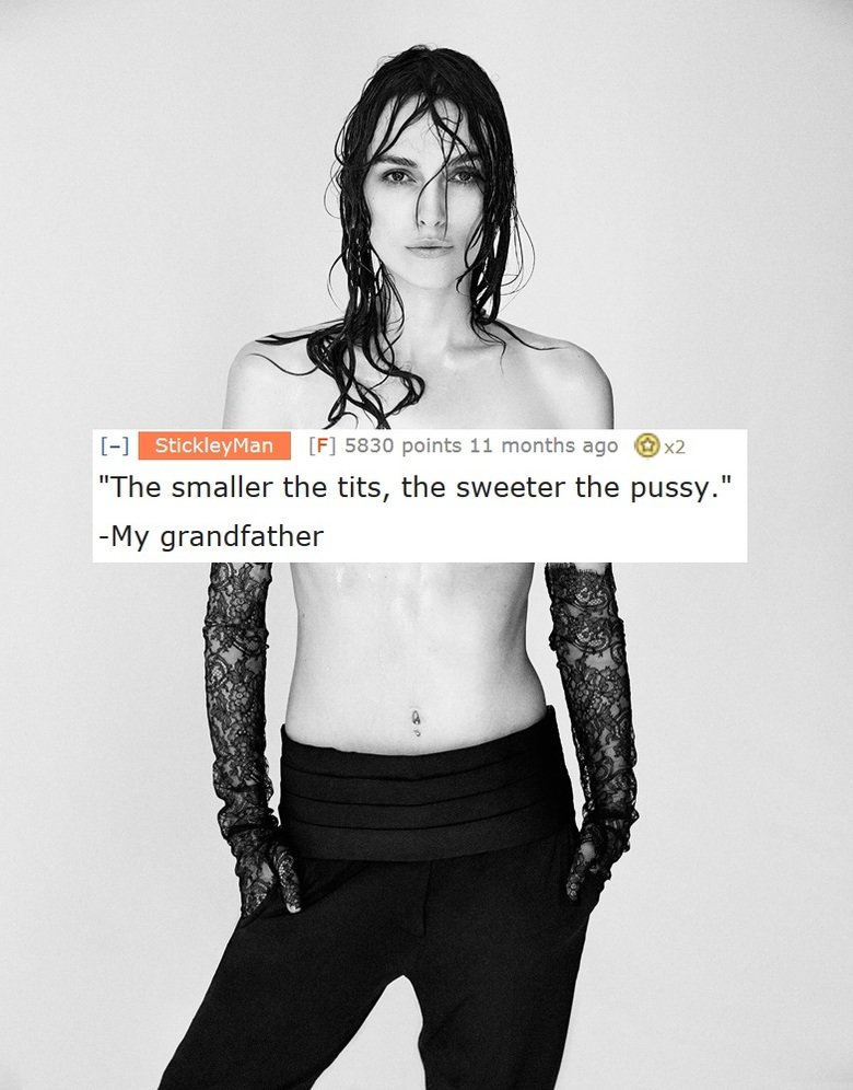 My tits are tiny though. I wonder if there are factors that your grandfather left out? Like maybe 'the less hair the greener the pastures'. **** me; I dunno.