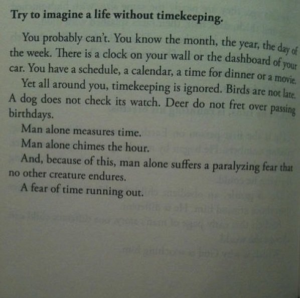 This is ******* stupid. Nature measures time by the sun rising and falling, by tides, and by seasons changing. Creatures of all kinds rely on various time keeping measures, and often strive to achieve things before they run out of time (eg. migrating from one place to another before wind currents die down or cold sets in).