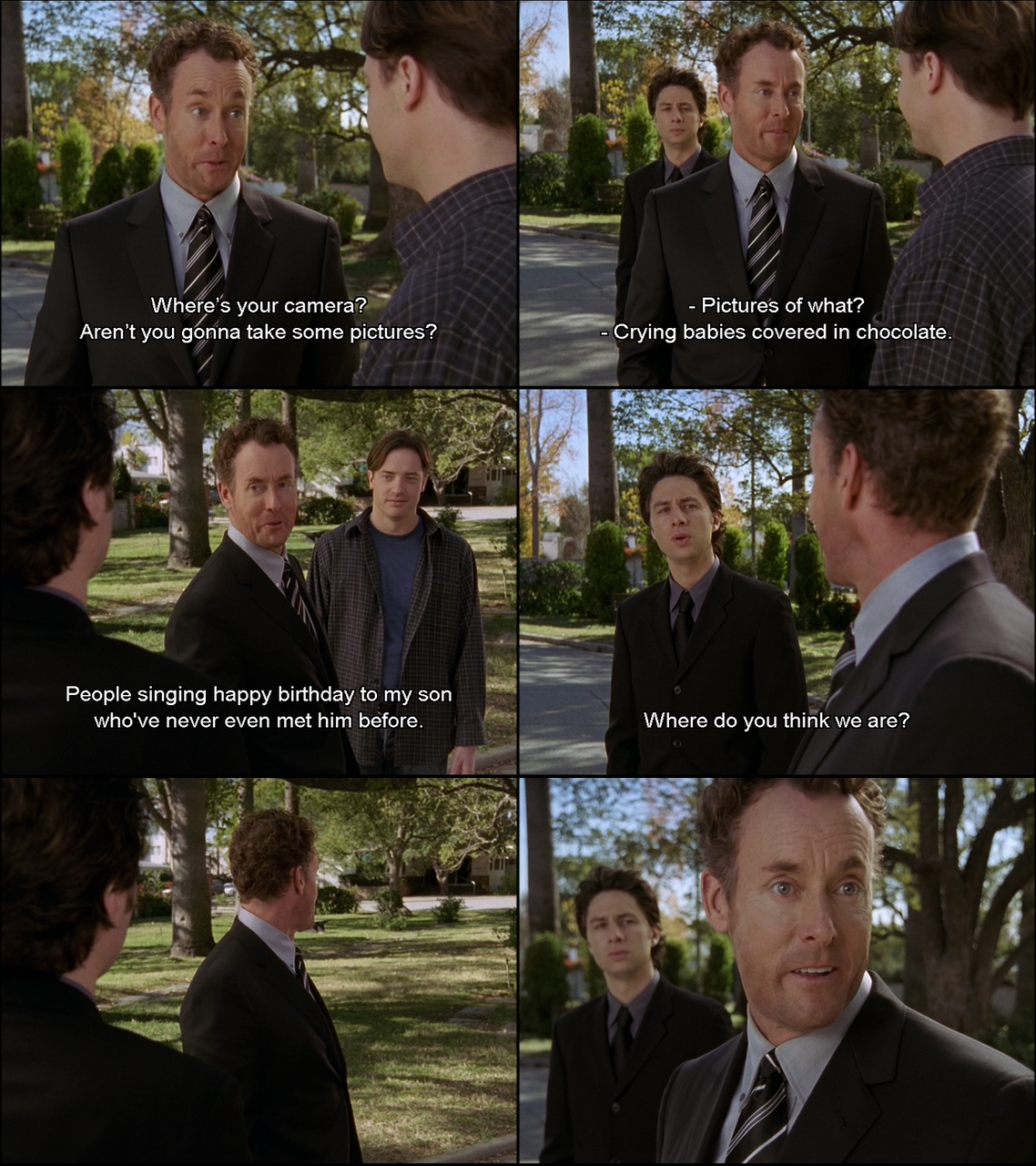 I can't really remember correctly but the guy who is talking about taking pictures is hallucinating and seeing his brother/friend who died. Within context it was all very emotional.