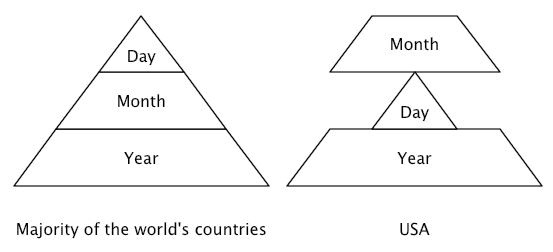 I hate this picture so much because it causes people to believe that there isn't logic behind the US system. It goes 12 months of the year, 28-31 days of the month, infinite years. It goes by order of the number of options. Months have the lowest number of options, days have the middle, and years have the most.