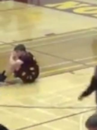 In the content gif, the ball didn't go in the basket so it wasn't required that it be passed in. In this gif, the ball goes in so it must be played in from out of bounds to restart the play