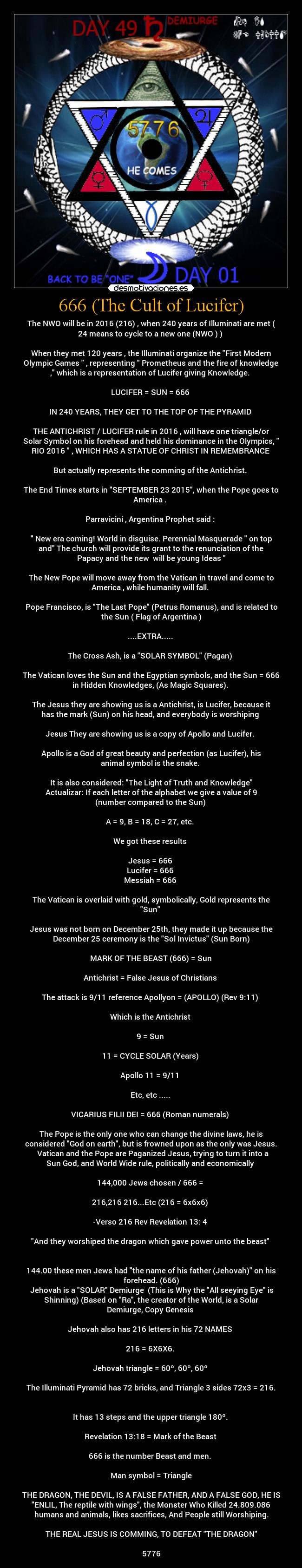 The we will be in 2016 (215) , when 240 years of Illuminati are met (