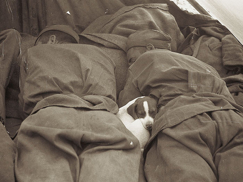 Soviet soldiers taking a nap after the liberation of Prague, 1945